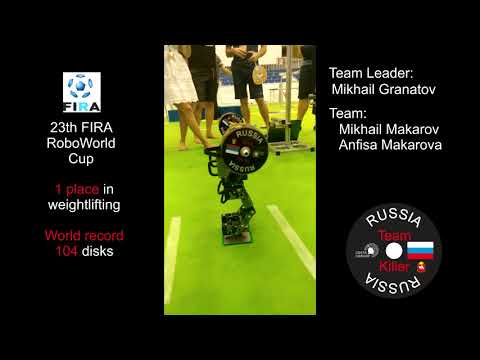 По условиям соревнований, роботы должны были имитировать поведение человека в различных спортивных дисциплинах. Российский робот стал победителем по тяжелой атлетике – он сумел поднять штангу со 104 компакт-дисками, имитирующими «блины»и даже прошел немного с такой ношей, удивив всех своей силой. Жюри по достоинству оценило этот рекорд! Участвуя в многоборье, он уверенно занял третье место.