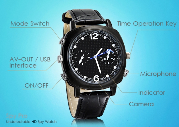 Как вы думаете, как выглядят шпионские часы? Наверно они должны обладать стильным дизайном, водонепроницаемым корпусом и, конечно же, встроенной камерой. Всеми этими преимуществами обладают часы Spy Pro.