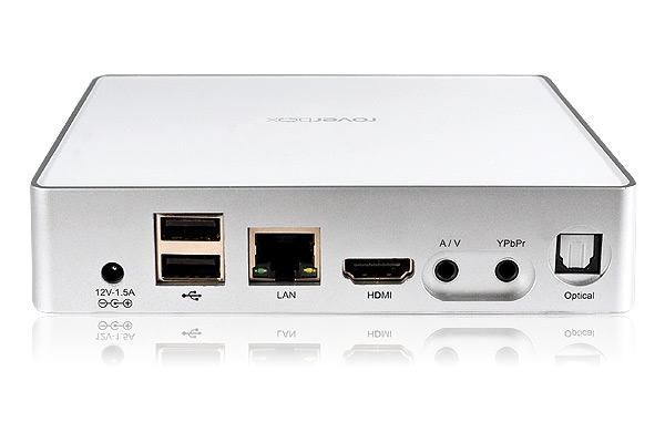 Подключение к ТВ осуществляется с помощью компонентного, композитного или HDMI выходов. Существует возможность использования необработанного аудио сигнала через цифровой оптический выход SPDIF. Каждое устройство снабжено двумя USB host интерфейсами для подключения внешних HDD и USB-флеш накопителей, а так же устройством чтения/записи карт SD/SDHC. RoverBox прекрасно справляется с воспроизведением медиаконтента по локальной сети, позволяя использовать ресурсы сетевых накопителей и ПК (подключение к сети осуществляется с помощью Wi-Fi 802.11n или Ethernet).