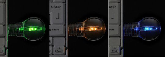Флешка от Green House не только имеет вид лампочки, но так же может светиться 3 цветами: синим, зеленым или красным.